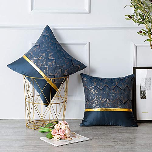 Artscope Fodera per Cuscino Patchwork Morbida con Fodera per Cuscino in Pelle a Righe Ondulate Oro Federa Moderna di Lusso per Divano Camera da Letto Soggiorno Decorazioni per la Casa, 18"x18 (Blu)