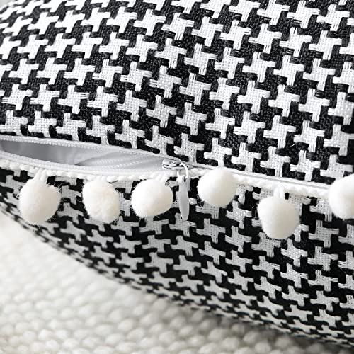 DESIGN MERAVIGLIOSO: il classico motivo scozzese pied de poule e graziosi pompon rendono la tua casa più interessante e bella. Stampato su entrambi i lati, non sbiadisce. Puoi trarre ispirazione da queste delicate fodere per cuscini per mescolare e abbinare. È un bellissimo arredamento per la casa.