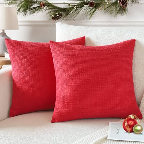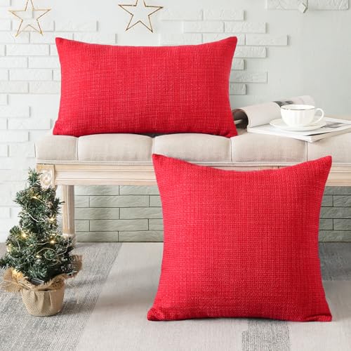 Artscope 2 Pezzi Natale Federe per Cuscini in Finto Lino Minimalista Copricuscini Decorativo per Domestica Soggiorno Camera da Letto Divano 65x65cm, Rosso