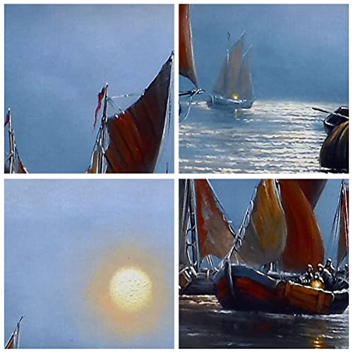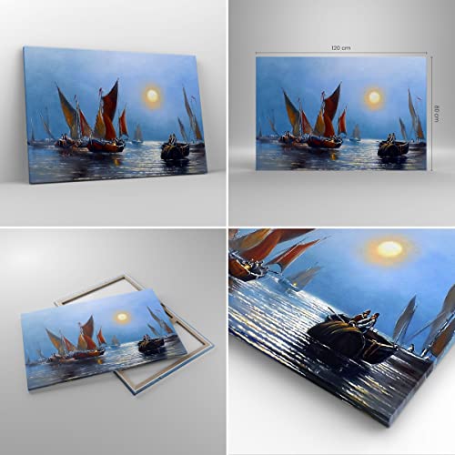 ARTTOR Quadro su tela - Elemento unico - Barche Sole pescatori pesca - 120x80cm - Pronto da appendere - Home Decor - Stampe su Tela - Quadri Moderni - completamente incorniciato - AA120x80-2957
