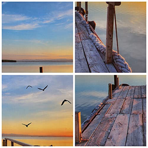 ARTTOR Quadro su tela - Elemento unico - Lago natura ponte uccelli - 70x50cm - Pronto da appendere - Home Decor - Stampe su Tela - Quadri Moderni - completamente incorniciato - AA70x50-2402