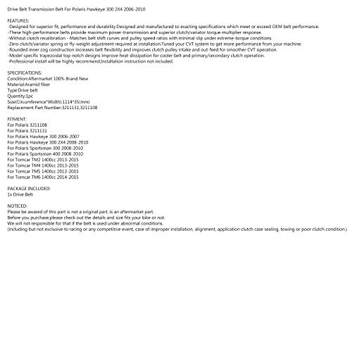 Artudatech Cinghia di trasmissione per moto, cinghia di trasmissione per Polaris Sportsman 300 400 Hawkeye 2X4 Tomcar TM2 TM4 TM5 TM6