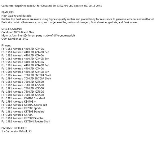Questo kit di ricostruzione carburatore è adatto per KAWASAKI 440 LTD, 700 LTD, 750 LTD, KZ440B KZ750E.