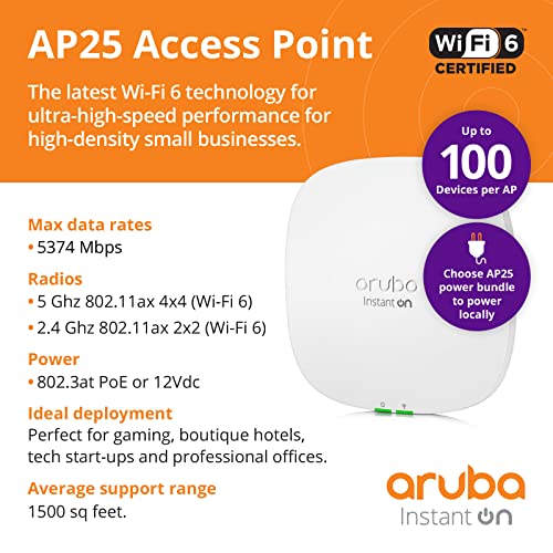 Aruba Instant on AP25 .11ax 4x4 WLAN Access Point | RW Rest-of-World Model | Power Source Not Included (R9B28A)
