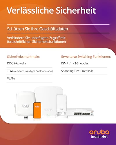 Applicazione mobile Aruba Instant On e/o portale Web basato su cloud per gestione della rete semplificata, on-site o da remoto;