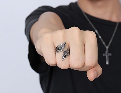 Aruie - Anello da uomo in acciaio inossidabile con piuma aperta vintage classico biker tribale e Acciaio inossidabile, 27, cod. AJR10071