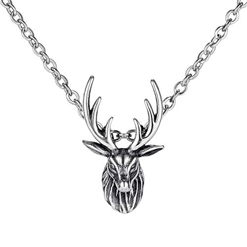 Aruie - Collana con ciondolo a forma di testa di cervo, in acciaio inossidabile, stile vintage