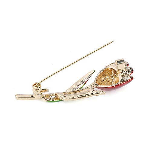 Aruie - Spilla da donna e ragazza, in lega con zirconi e diamante, simulato tulipano floreale, smaltato, accessorio regalo - rosa rosso e Fede, colore: rosso, cod. ARS32902