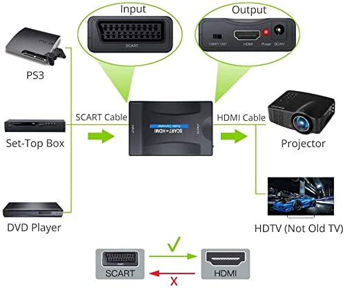 Asbter Scart verso HDMI - Cavo convertitore audio video con adattatore, presa in carica di uscita 60Hz HDMI 720P / 1080P per HDTV STB Xbox PS3 Sky DVD Blu-Ray