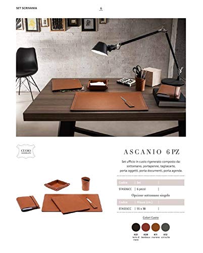 ASCANIO 5, Set di Accessori da scrivania in Cuoio, Set Ufficio, sottomano da scrivania, portaoggetti, portapenne, Antiscivolo, Made in Italy by Limac Design®, Antracite