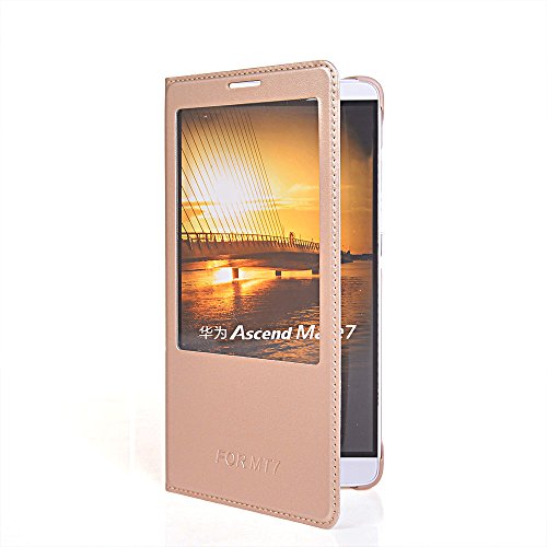 Ascend Mate 7 Custodia,COOLKE [Gold] Ultra Slim Custodia cover FLip Clear View con vista id chiamante per Huawei Ascend Mate 7
