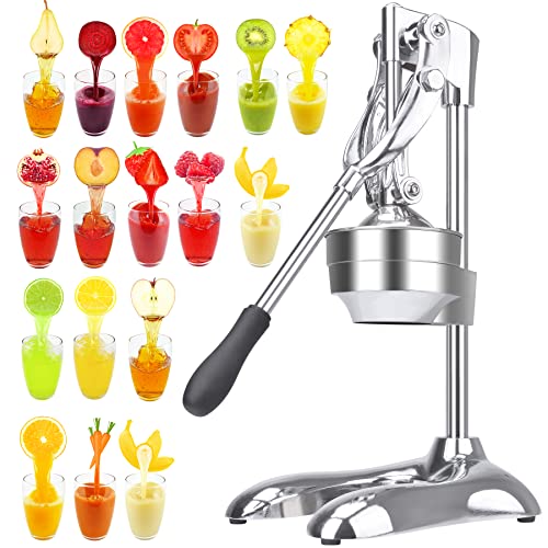 Aschef Spremiagrumi Manuale Professionale in Acciaio Inox e Lega di Alluminio con Leva Antiscivolo, Centrifuga Frutta e Verdura Estrattore di Succo per Limone Melograno Mela Pomodori Pere