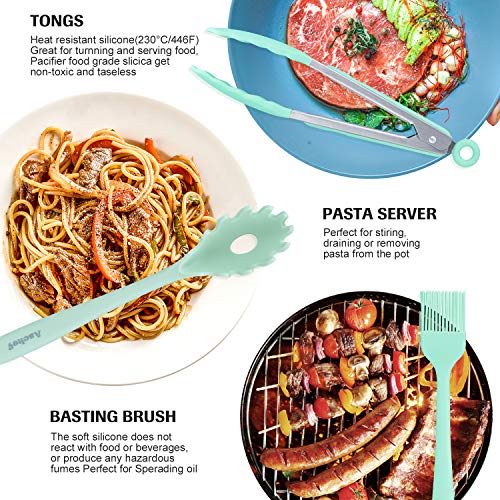 Aschef - Set di Utensili da Cucina in Silicone, pratici e robusti, antiaderenti, Set da 11 Pezzi, (completo di Contenitore) Colore: Blu