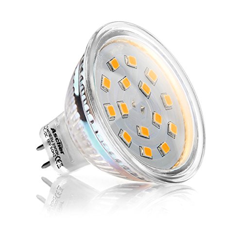Ascher Lampadine a LED da 3W MR16 GU5.3, Pari ad una Lampada Alogena da 30W, 250lm, Luce Bianco Caldo, AC/DC 12V, Angolo a fascio da 120°, Faretti, Luci ad incasso, Confezione da 4 unità