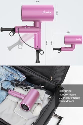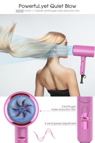 Asciugacapelli agli ioni di litio 2200 W, Motore AC, Phon per Capelli Ioni da Viaggio, Manico Pieghevole, Asciugacapelli ad asciugatura rapida, con tasto caldo/freddo, 3 temperature/2 velocità