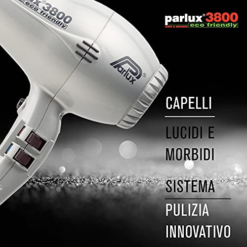 Asciugacapelli Professionale PARLUX 3800 Ecofriendly -Potente, silenzioso, con tecnologia Ionic & Ceramic® e filosofia Ecofriendly. Asciugatura Rapida e capelli Lucenti. MADE IN ITALY. Colore NERO.