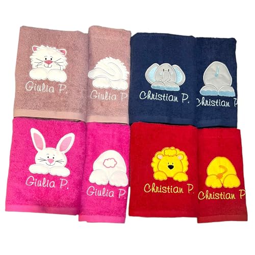 PERSONALIZZAZIONE - Gli asciugamani per bambini si possono personalizzare facilmente con il pulsante Personalizza ora. Trovate tutti i modelli disponibili, si può scegliere il colore degli asciugamani e il nome da ricamare. Il set arriverà imballato con cura pronto per essere regalato. Foto originali senza filtri.
