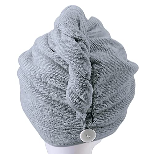 Asciugamani Capelli Turbante, 3 Pezzi Super Assorbente in Microfibra con Chiusura a Bottone per tutti i tipi di capelli Qualità premium Asciugamani da Doccia bianco, grigio, rosa