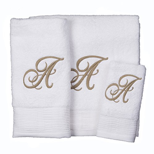 Set asciugamani color sabbia con lettera bianca disegnata Lettera A