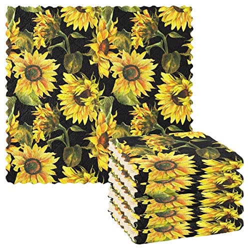 Asciugamani da cucina con girasoli ad acquerello, riutilizzabili, set di 6 asciugamani assorbenti per piatti, per asciugare piatti, accessori da cucina