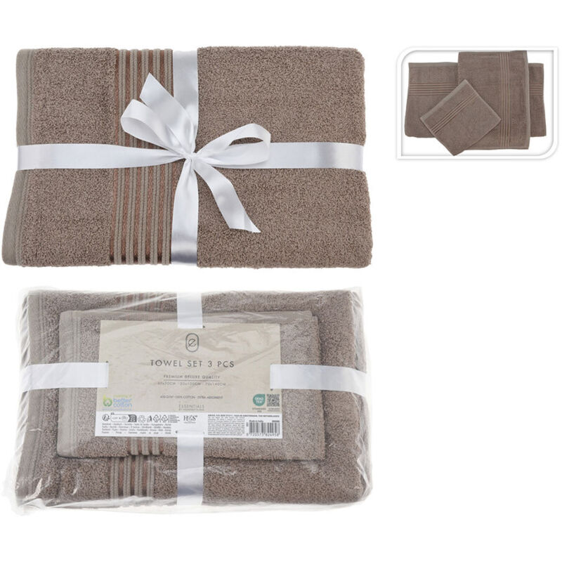 Ogni pezzo del nostro set di asciugamani Topo Deluxe è stato realizzato con cotone della massima qualità, garantendo una morbidezza che dura lavaggio dopo lavaggio. Il colore tortora si integra armoniosamente in qualsiasi arredamento del bagno, dal più moderno al più classico, donando un tocco di eleganza e di calore . Materiale Premium: 100% cotone per un comfort senza pari. Colore a lunga durata: Tecnologia che mantiene il colore intenso lavaggio dopo lavaggio. Varietà di misure: include asciugamano da bagno (70x140 cm), asciugamano (50x90 cm) e toletta (30x50 cm). Asciugatura rapida: Tessuto speciale che favorisce la rapida evaporazione dell'umidità. Resistenza: costruzione di qualità che resiste all'uso quotidiano e ai lavaggi frequenti. Goditi un'esperienza di asciugatura unica con gli asciugamani che combinano funzionalità, design e la massima qualità per la tua casa.