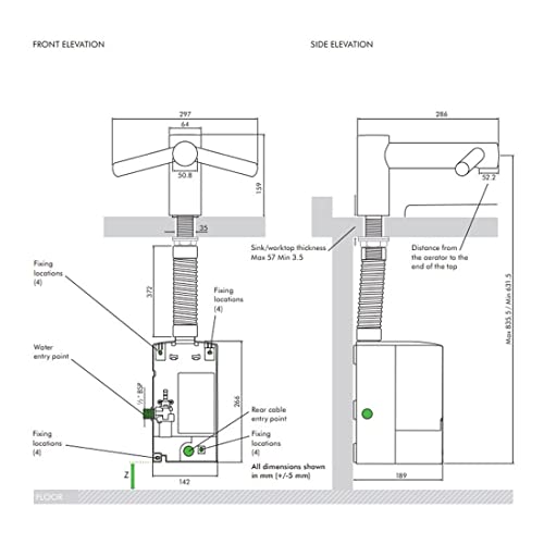 Dimensioni rubinetto: L 295 x P 281 X H 159 mm