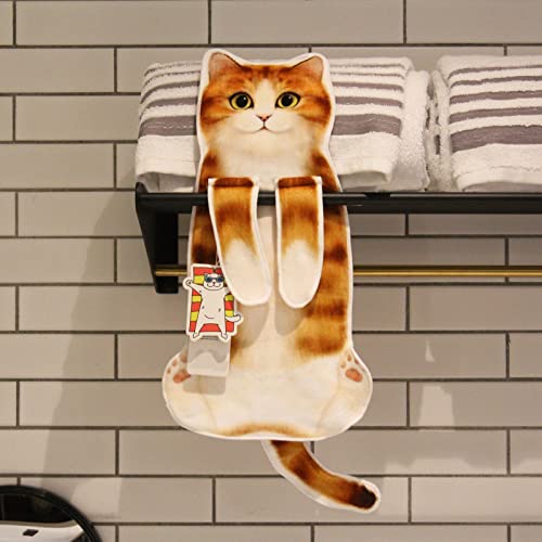 Asciugamano carino per gatti: divertenti asciugamani da bagno per gatti appesi su un portasciugamani, il bottone a pressione sulla mano dell'asciugamano per gatti impedisce che scivoli via. Asciugandoti le mani e sentendo il tocco della pancia del gatto, sarai guarito dal tocco morbido e confortevole del tessuto ! Il motivo del gatto sul dorso, sulla coda e sulle zampe è molto vivido, così adorabile che anche gli asciugamani ti fanno venire voglia di abbracciarli!