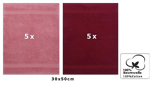 Set di 10 Asciugamani per Gli Ospiti “Premium”, Colore: Rosa Antico e Rosso Scuro, Misura: 30 x 50 cm