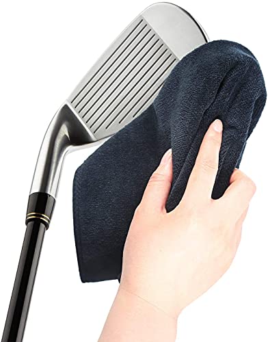 2 asciugamani da golf, panni in microfibra per la pulizia del golf, con moschettone, da appendere alla borsa per mazze da golf, yoga, campeggio, attività all'aperto (16"x13", nero e blu scuro)