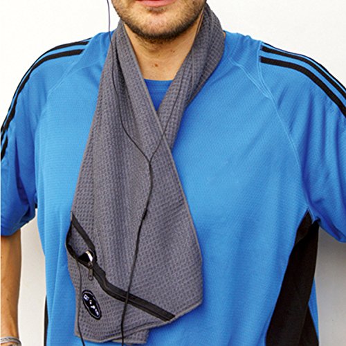 Perfetto Taglia & Design elegante Funzionale - Formato 30 * 110CM, abbastanza a lungo per utilizzare normalmente, con tasca con zip integrato per riporre il cellulare, le chiavi, contanti, carte, auricolare, MP3 e più chiuso alla vostra mano, sarà sorprendente a questo asciugamano multifunzionale.