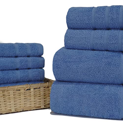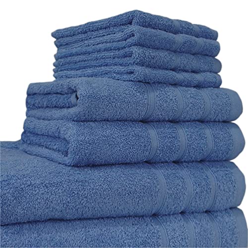 Set di 8 asciugamani pregiati, 100% cotone egiziano, 550 g/m², misura XL, Cotone, Blue, 8 Pieces Set