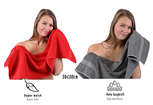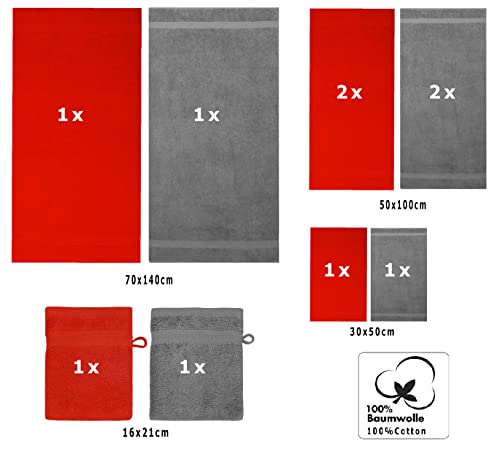Betz Set di 10 Asciugamani Premium 2 Asciugamani da Doccia 4 Asciugamani 2 Asciugamani per Ospiti 2 Guanti da Bagno 100% Cotone Colore Rosso e Grigio Antracite