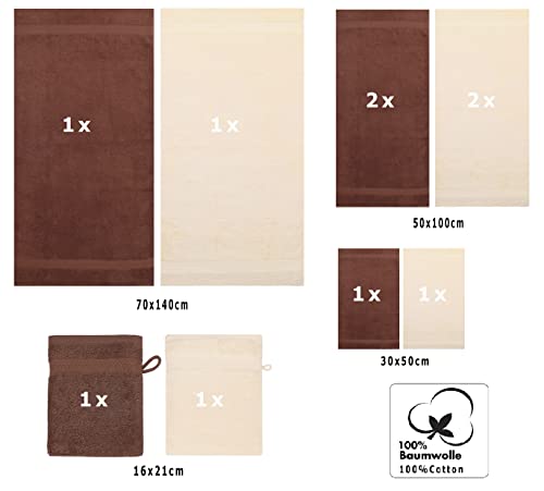 Betz Set di 10 Asciugamani Premium 2 Asciugamani da Doccia 4 Asciugamani 2 Asciugamani per Ospiti 2 Guanti da Bagno 100% Cotone Colore Beige e Marrone Noce