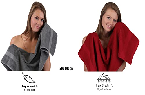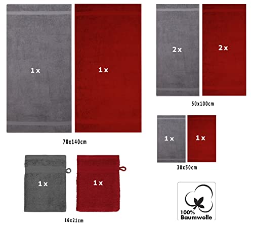 Betz Set di 10 Asciugamani Premium 2 Asciugamani da Doccia 4 Asciugamani 2 Asciugamani per Ospiti 2 Guanti da Bagno 100% Cotone Colore Rosso Scuro e Grigio Antracite