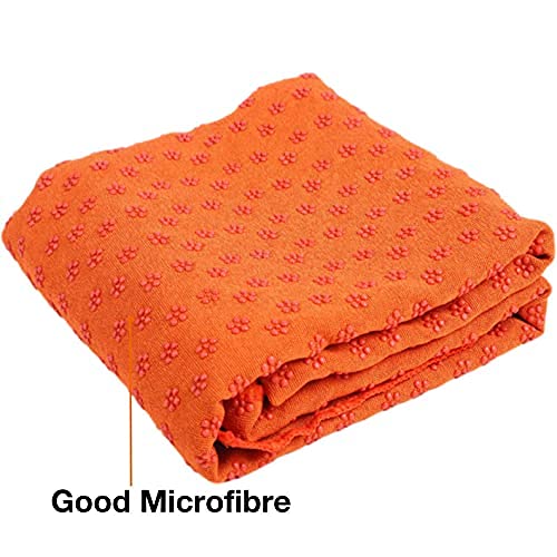 Asciugamano Yoga Antiscivolo Grip - Microfibra Tappetino Yoga con Un'Elevata Aderenza al Pavimento - Antiscivolo, Super Assorbente, Non Slittamento, Asciugatura Rapida - 183 cm x 61 cm - Arancione