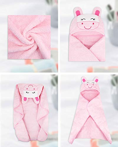 Asciugamano da bagno per bambini, in cotone, con cappuccio, morbido asciugamano con orecchie carine, colore rosa
