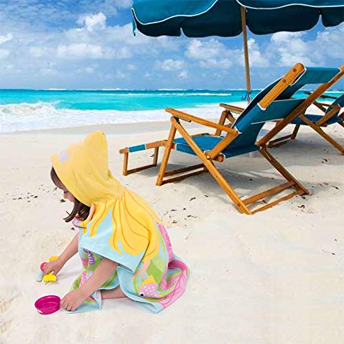 Asciugamano da Bagno con Cappuccio Poncho Accappatoio per Bambini Asciugamano da Spiaggia in cotone Nuoto per ragazze Ragazzi Morbido Caldo Carino (Sirena(70x60cm))