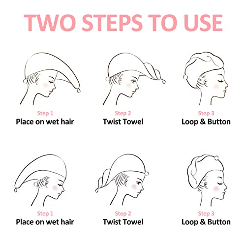Asciugamano Capelli Turbante, Rayyl 2 Pezzi Asciugamani in Microfibra, Asciugamani da Doccia con BottoniCuffia per Capelli Secchi Super Assorbente