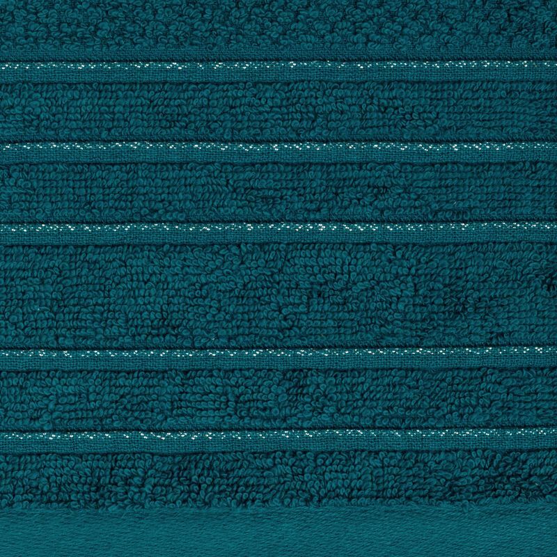 Asciugamano da bagno classico realizzato in tessuto di cotone assorbente con trama in spugna. Bordo minimalista in velluto con aggiunta di filo metallico lucido. larghezza: 30 cm, lunghezza: 50 cm, colore: turchese, peso: 500 g/mq, composizione: 100% cotone;