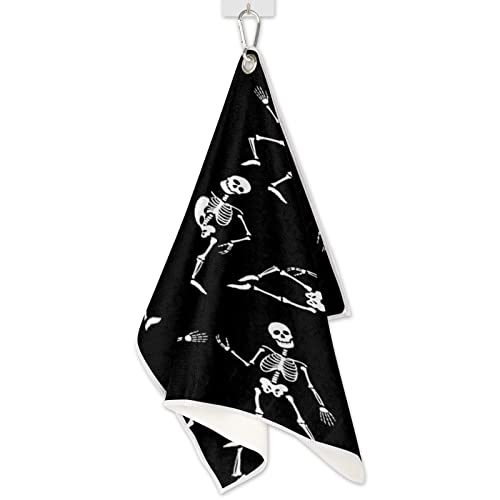 Asciugamano da golf in microfibra, per Halloween, danza, scheletro, assorbente, ad asciugatura rapida, con moschettone resistente, per sport all'aria aperta, palestra, campeggio, fitness, corsa