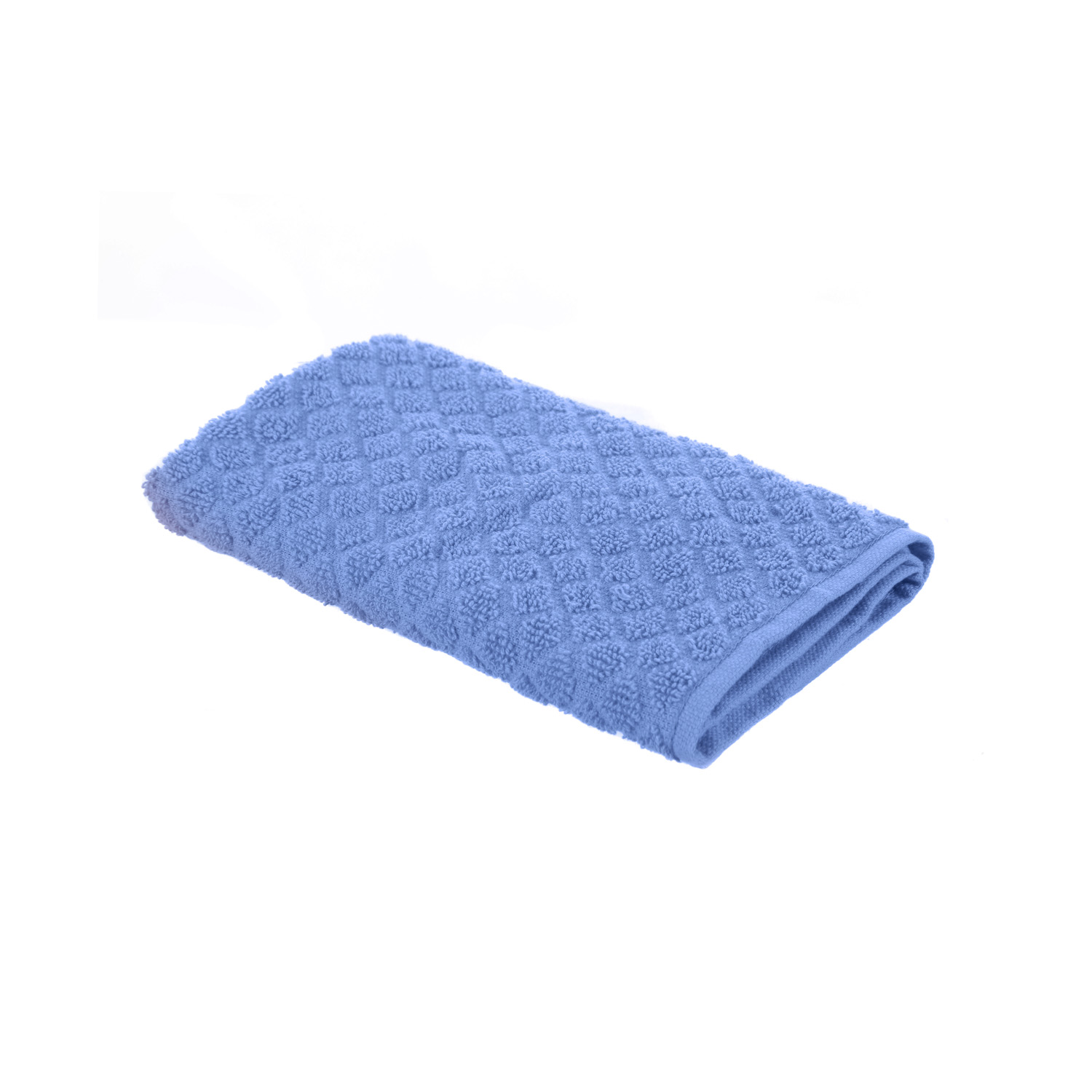 Diamond è la linea di asciugamani bagno di KASANOVA dal delicato pattern a rombi, realizzata in 100% cotone. Morbido e delicato a contatto con la pelle, l'asciugamano ospite è perfetto per la tua igiene quotidiana e in più, con il suo delicato design azzurro, porta un tocco di colore in bagno. Potrai creare il tuo set tutto coordinato acquistandolo con l'asciugamano viso e il telo doccia della linea o creare accostamenti di colore originali. Grammatura: 450 gr/mq. Lavabile in lavatrice a 40°. Misura: 40x50 cm.