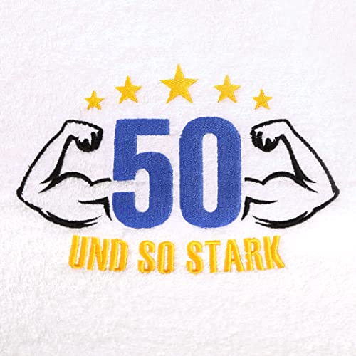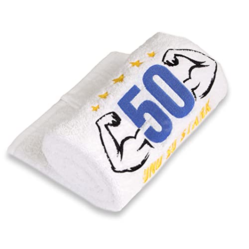 Abc Casa 50° asciugamano regalo di compleanno con muscoli ricamati per uomini - un regalo utile per 50 anni - una meravigliosa idea regalo per il 50°