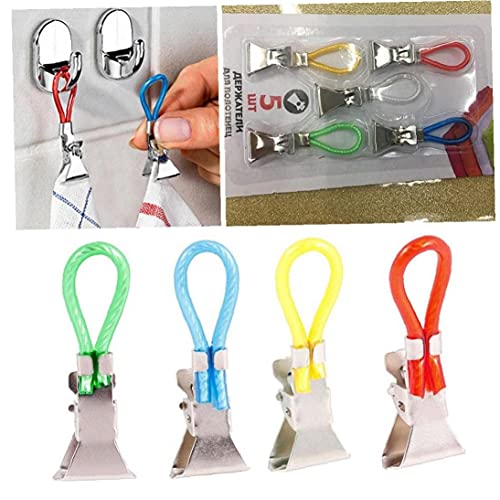 5pcs Asciugamano Tè Clip a Sospensione Clip in Metallo Clip Su Ganci Loops Manuale Asciugamani Clip Per Cucina Bagno Spiaggia Colore Casuale