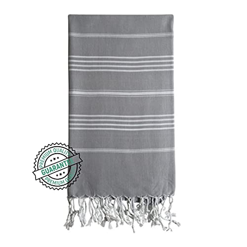 Asciugamano per la spiaggia, 100% in cotone, conforme allo standard Oeko-Tex 100, prevatoo, super morbido, pronto da usare, asciugamano Hamam, asciugamano da bagno, telo mare, telo viso, telo per bambini, asciugamano per bagno turco, peshtemal, fouta, 100% cotone, grigio, X-Large
