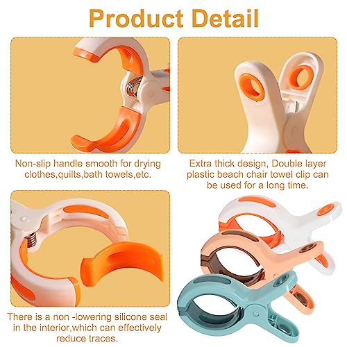 【Design Senza Segni】Le clip per asciugamani da spiaggia resistenti al vento sono leggere, hanno un'impugnatura ergonomica, senza spigoli vivi, una presa comoda, non lasciano segni o ammaccature quando si afferrano i vestiti o gli asciugamani. Ci sono due distanziatori all'interno della clip grande, che si adattano meglio ai vestiti quando si usano, senza lasciare impronte.