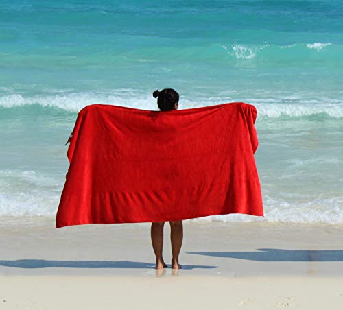 XL, asciugamano da spiaggia/viaggio in microfibra, 2 x 1 m, 400 g/mq, super morbido, asciugatura rapida e altamente assorbente, Red