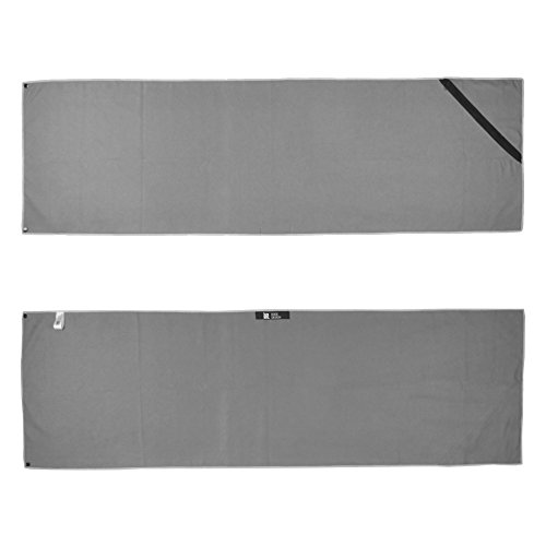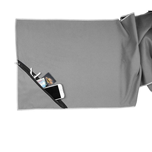 Asciugamano sportivo microfibra per palestra Larghezza ideale per dispositivi, scomparto extra, cerniera + attacco per dispositivi Microfibra antibatterica altamente assorbente, ultra-leggera asciugatura veloce, morbida, con tasca (grigio)