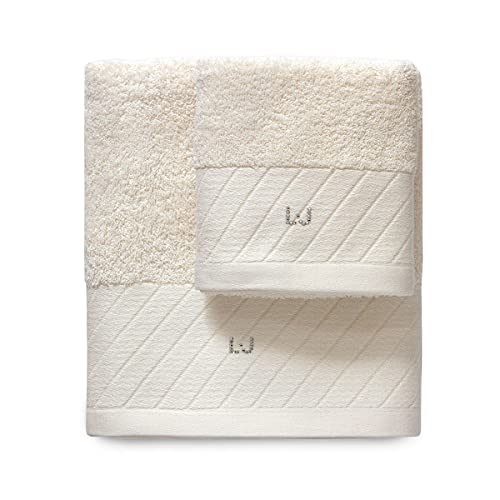 Set asciugamano in spugna viso più ospite 1+1 Diagonal di Liu Jo con logo (AVORIO)