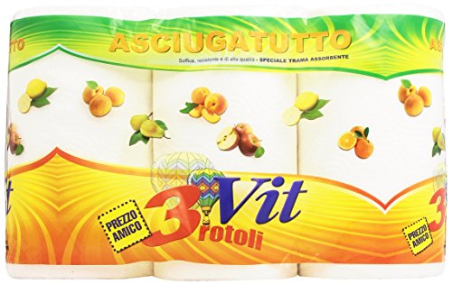 Vit - Asciugatutto, Pura Ovata di Cellulosa, 3 Rotoli