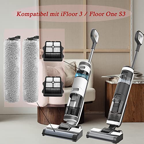 Asdazrxy Ricambi per Tineco Floor One S3 iFloor 3 Aspirapolvere Lavapavimenti Cordless Senza Fili, 2 Filtri di Ricambio, 2 Spazzole a Rullo, Accessori per Aspirapolvere a Umido e a Secco Tineco